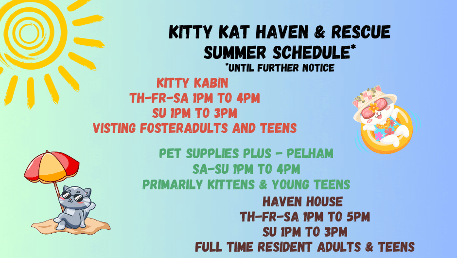 PLEASE NOTE: Kittens are not located at the Haven house. They are in foster care and can be met at adoption events or by appointment with an approved application. Please follow us on Facebook for up-to-date adoption event information.